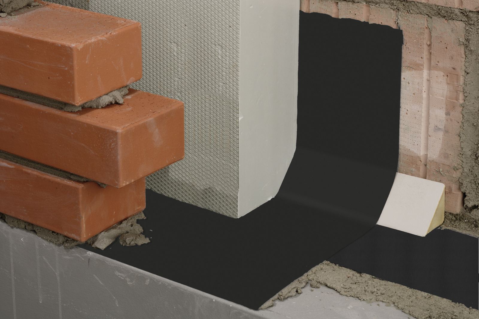 Als L-Sperre im zweischaligen Mauerwerk wird DELTA-SOFTFLEXX mit DELTA-THAN an das Mauerwerk angeklebt.