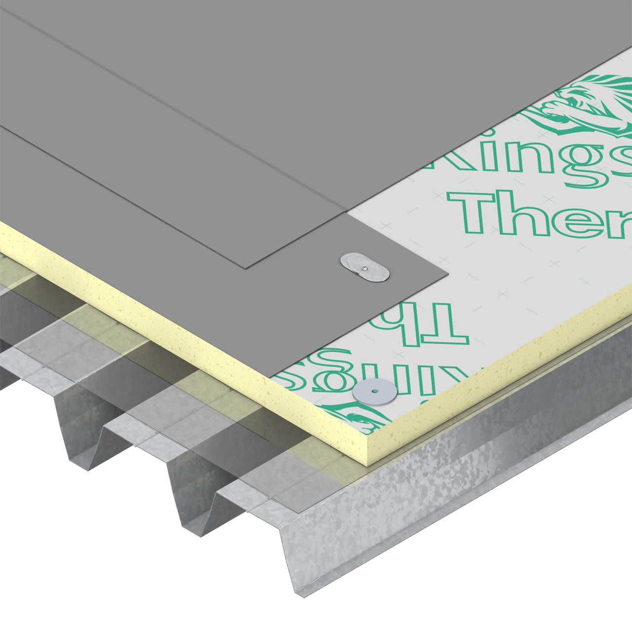 Flachdachdämmplatte aus Polyurethan (PIR)-Hartschaum mit beidseitiger Mehrlagen-Aluminium-Verbundfolie. Die Therma TR26 ist optimal geeignet für mechanisch befestigte Industrieleichtdächer. Dank des hohen Dämmwerts (WLS 023) können geringe Aufbauhöhen realisiert werden. Das spart Transport- und Verlegekosten, ermöglicht durch die geringe Rohdichte eine statisch günstigere Auslegung des Daches und reduziert das Aufbau-Volumen um 40 Prozent.