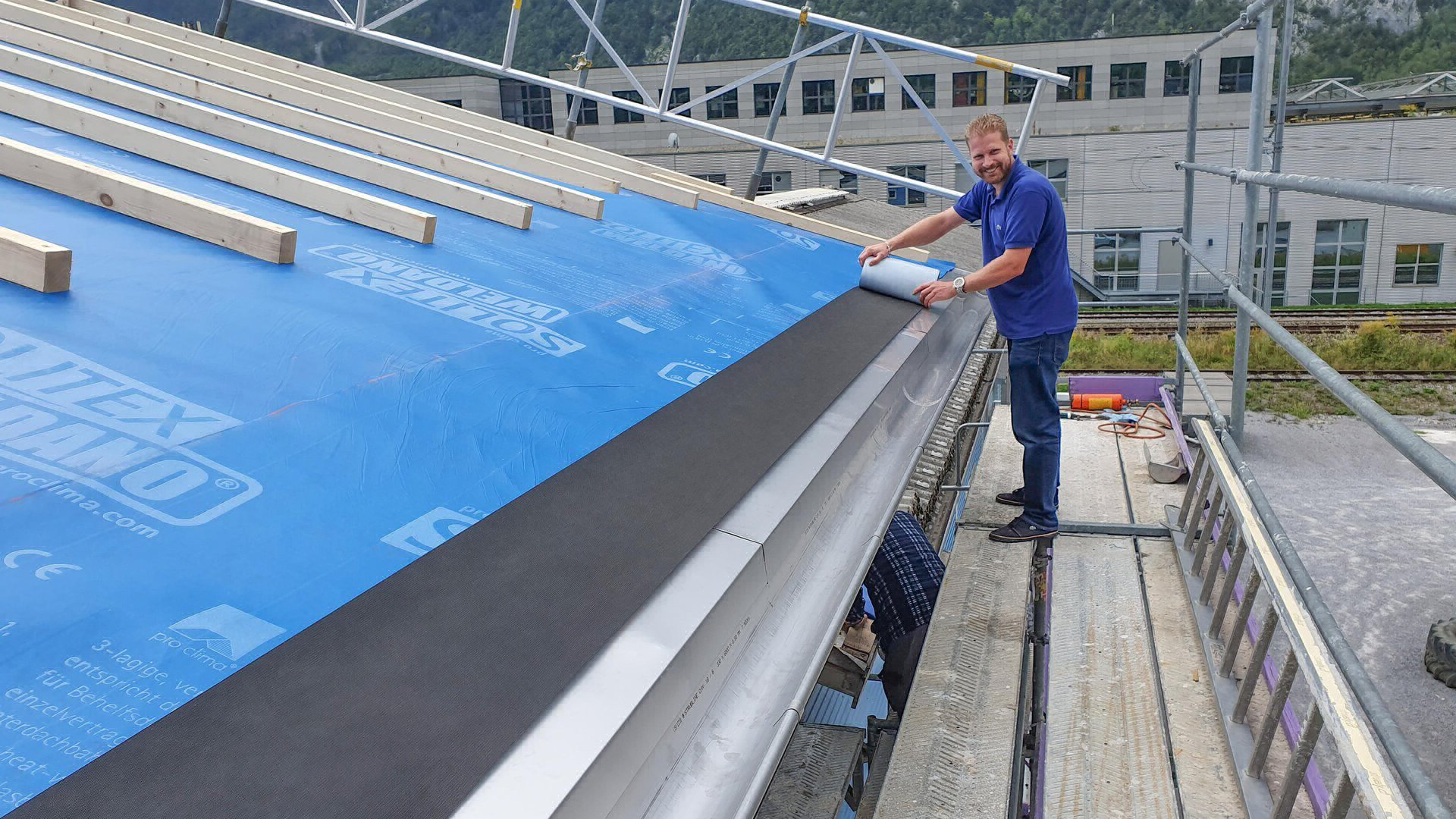 Einsatz als 3-lagige diffusionsoffene, homogen verschweißbare Unterdachbahn für ausserordentliche Beanspruchung gem. SIA 232/1 (CH).