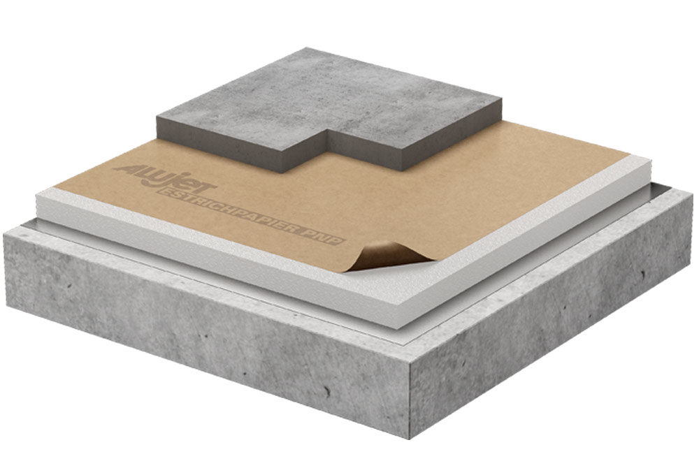 Das ALUJET-Estrichpapier PNP ist ein feuchtigkeitsunempfindliches Estrichpapier, das bevorzugt zur Abdeckung von Dämmschichten unter Fließestrichen eingesetzt wird.