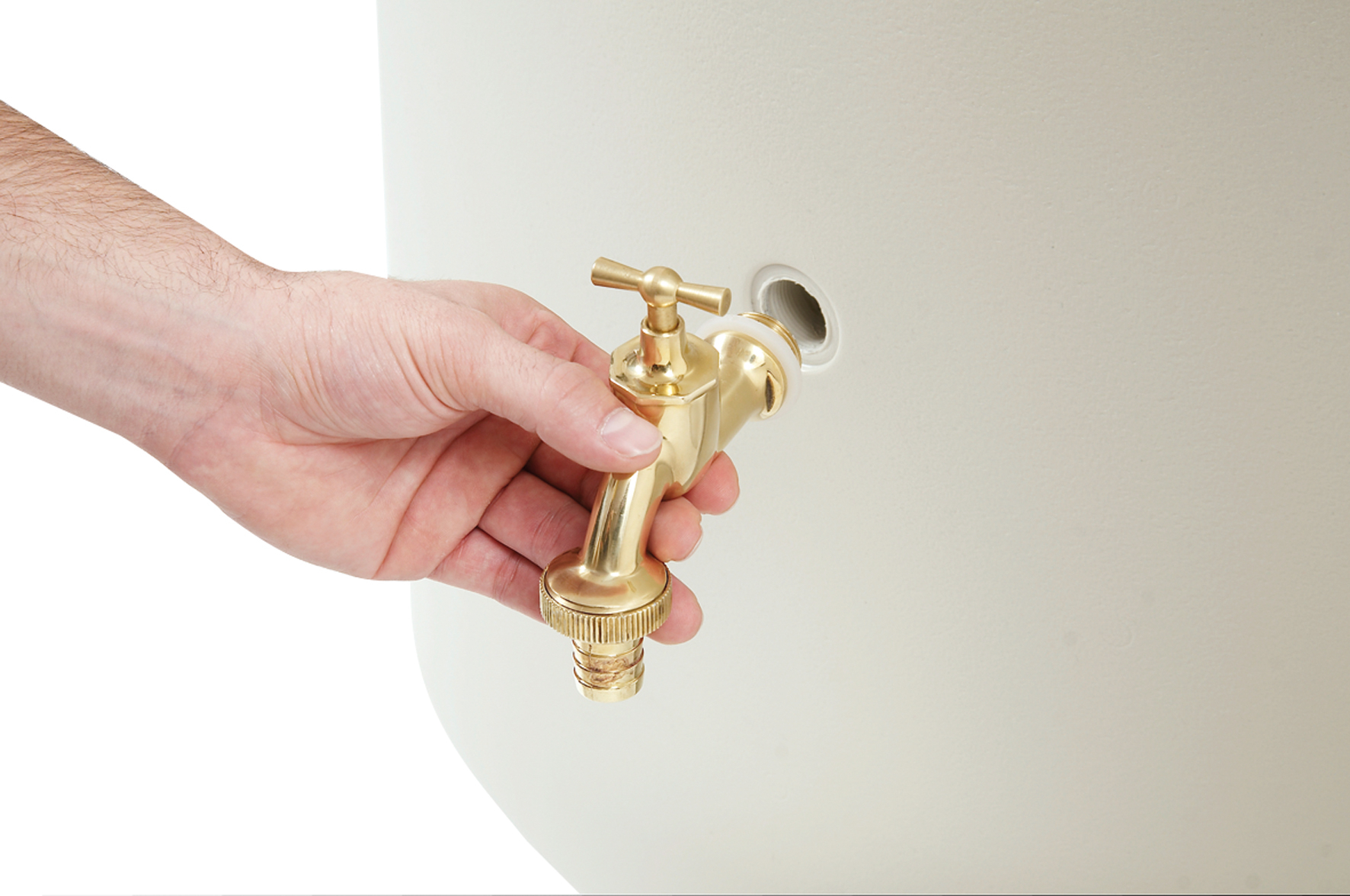 - Die Wasserentnahme ist durch Auslaufhahn (Zubehör) oder Universal-Schlauchset (Zubehör) denkbar einfach