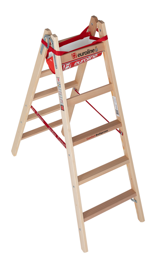 euroline Holz - Sprossenstehleiter mit Comfort - Breitsprosse Typ 10504