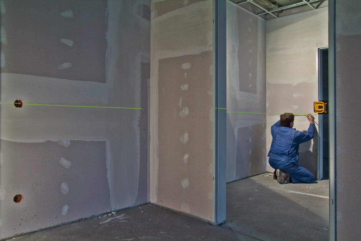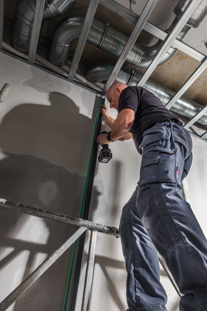 - Im Trockenbau - Decken abhängen, Zwischen- und Trennwände positionieren, U-Profile montieren und Layout vom Boden an die Decke übertragen.