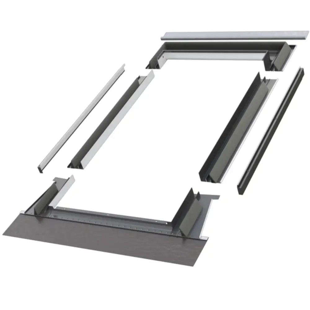 Der Eindeckrahmen ermöglicht den Anschluss des Fensters an profilierte Eindeckmaterialien wie Dachziegel oder Profilbleche mit einer Profilhöhe bis max. 45 mm.