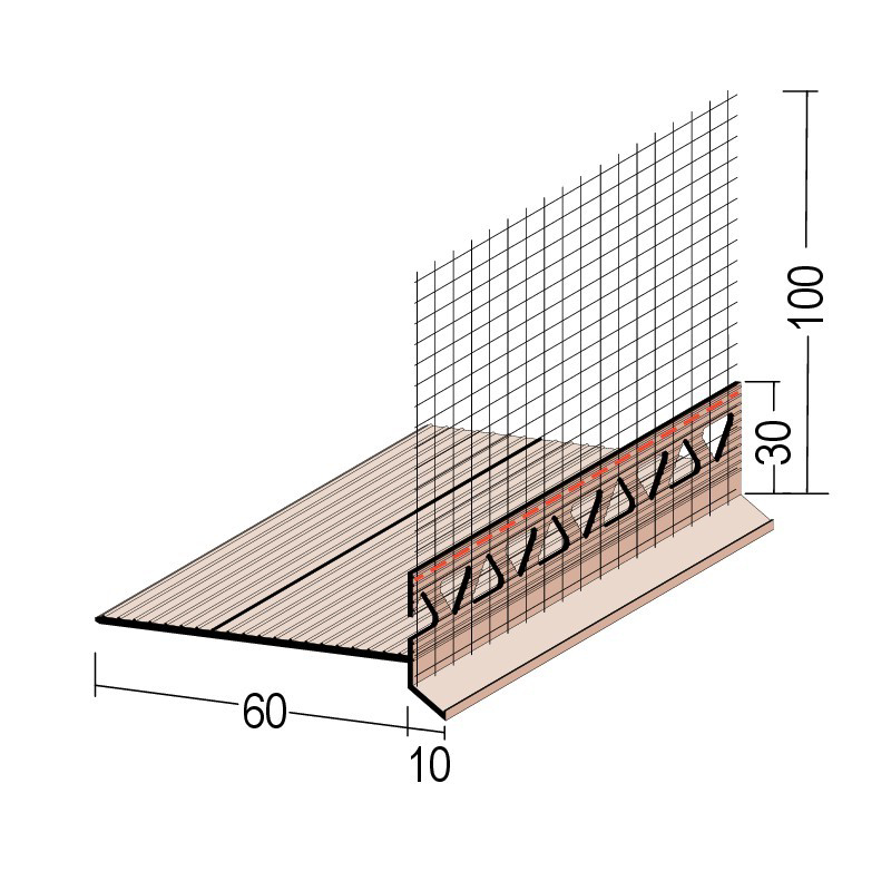 Aufsteck-Sockelausbildung aus PVC, für 10 mm Putzdicke, mit Tropfkante.
