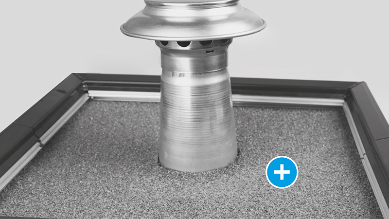 Homogene, bituminöse 5 mm starke Schweißbahn für die Abdichtung aller schwierigen Dachdetails, wie Dachdurchdringungen und Abläufe.