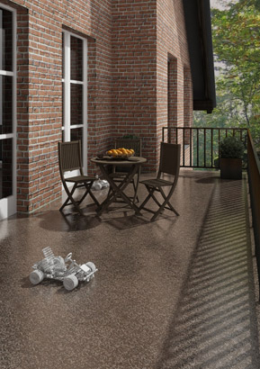 Einstreumaterial für ENKE Beschichtungen bzw. Versiegelungen zwecks dekorativer Gestaltung der Oberflächen von Balkonen, Terrassen, Laubengängen, Treppen, Fluren usw. Die Verwendung von ENKETOP - Chips ergibt dekorative, terrazzoähnliche Oberflächen.