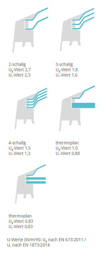 - Büro- und Wohngebäude: Lichtkuppel-Ur-Wert mindestens 1,4 W/m²K oder besser