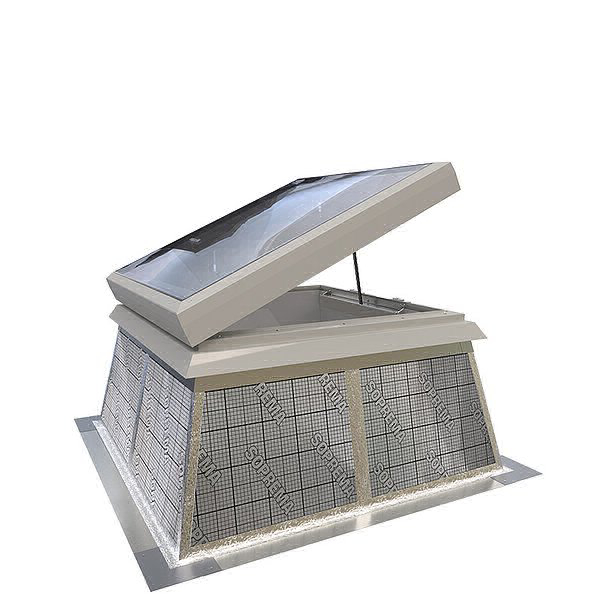 Beim Flachdachfenster esserdome handelt es sich um ein Oberlicht zur Belichtung bzw. zur Belüftung von Flachdachgebäuden. Ein besonderes Merkmal ist die kuppelförmig gewölbte Außenverglasung, die für einen besonders guten Abfluss von Regenwasser und damit für sauberere Scheiben sorgt.