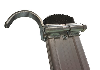 Am oberen Holmende zum Einhängen bei der Leiterbenutzung und tiefer angebracht zum platzsparenden Einhängen der Leiter im unbenutzten Zustand (Parkposition)
