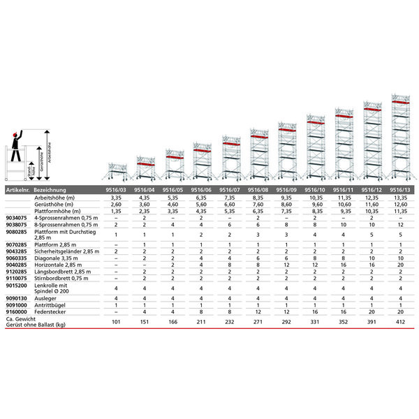 - Zulässige Belastung: 2 kN/m² (200k g/m²) gemäß Gerüstgruppe 3