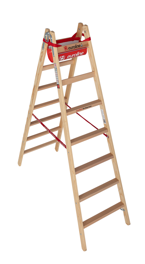 Mit der breiteren Standfläche ermöglichen diese Holz-Stehleitern auch bei längeren Arbeiten einen ermüdungsfreien Stand