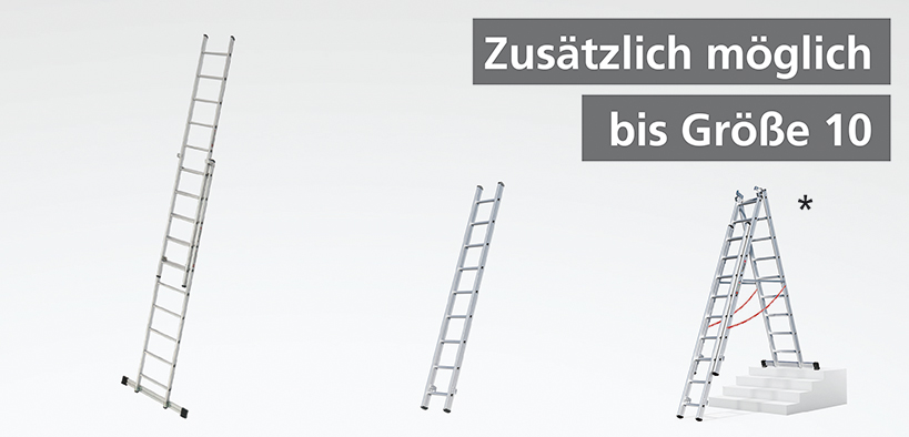 - Oberteil bis Größe 10 einzeln als Anlegeleiter verwendbar
