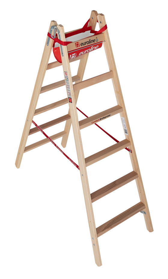 euroline Holz - Sprossenstehleiter mit Comfort - Breitsprosse Typ 10504