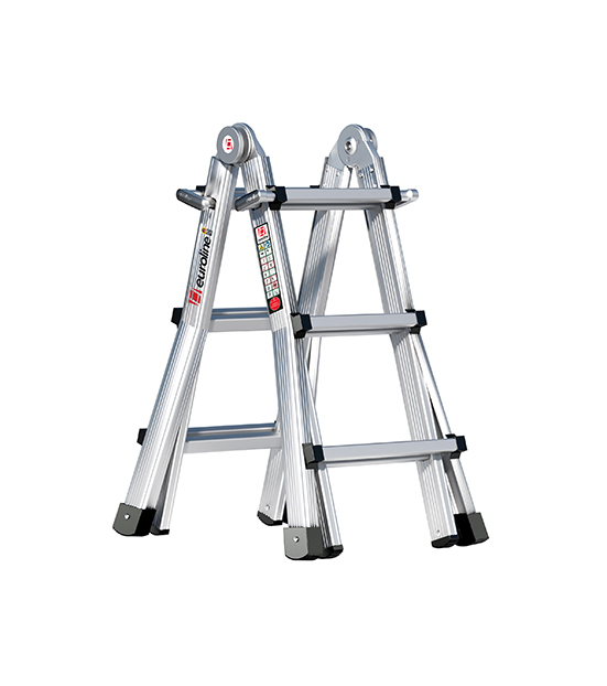 - Als eingeschobene Stehleiter beim Transport sehr kompakt