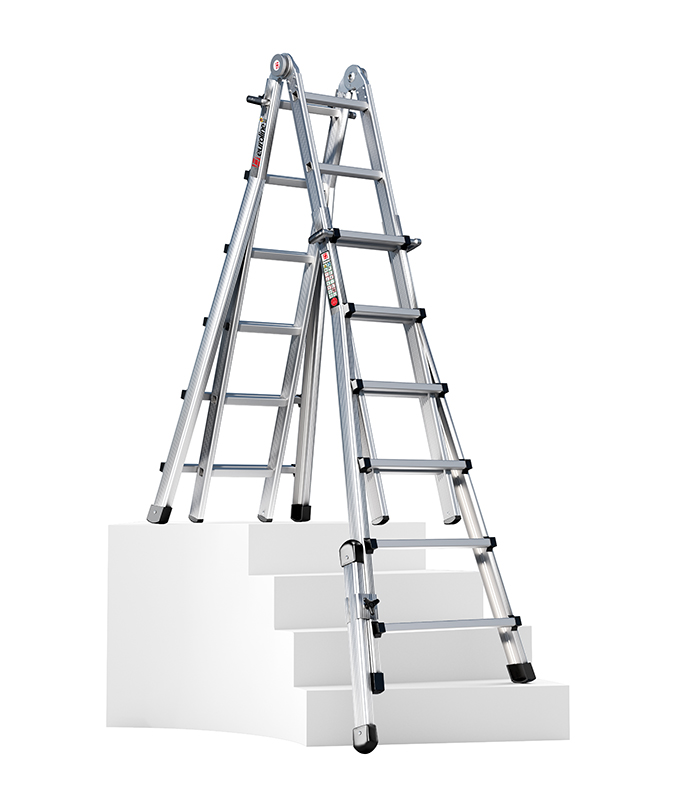 - Als eingeschobene Stehleiter beim Transport sehr kompakt