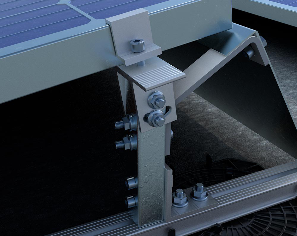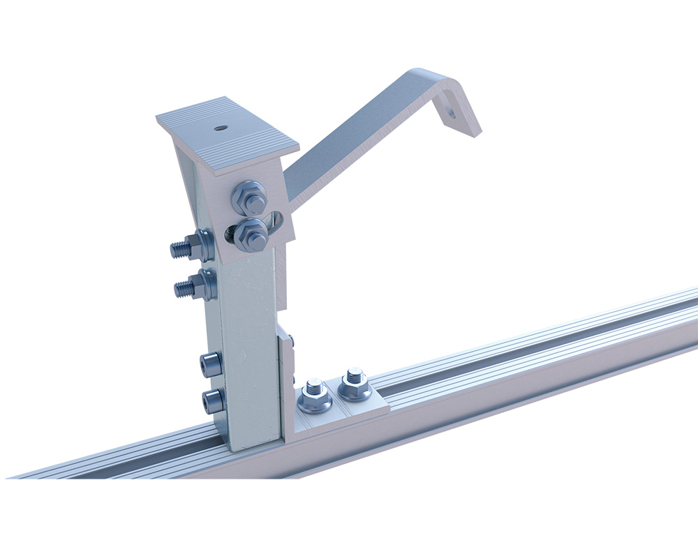 Auf dem Gelenk für Modulaufständerung hinten können die Solarpaneele individuell auf dem Montageprofil befestigt werden. Zustätzlich lässt sich der Winkel der Paneele flexibel einstellen.
