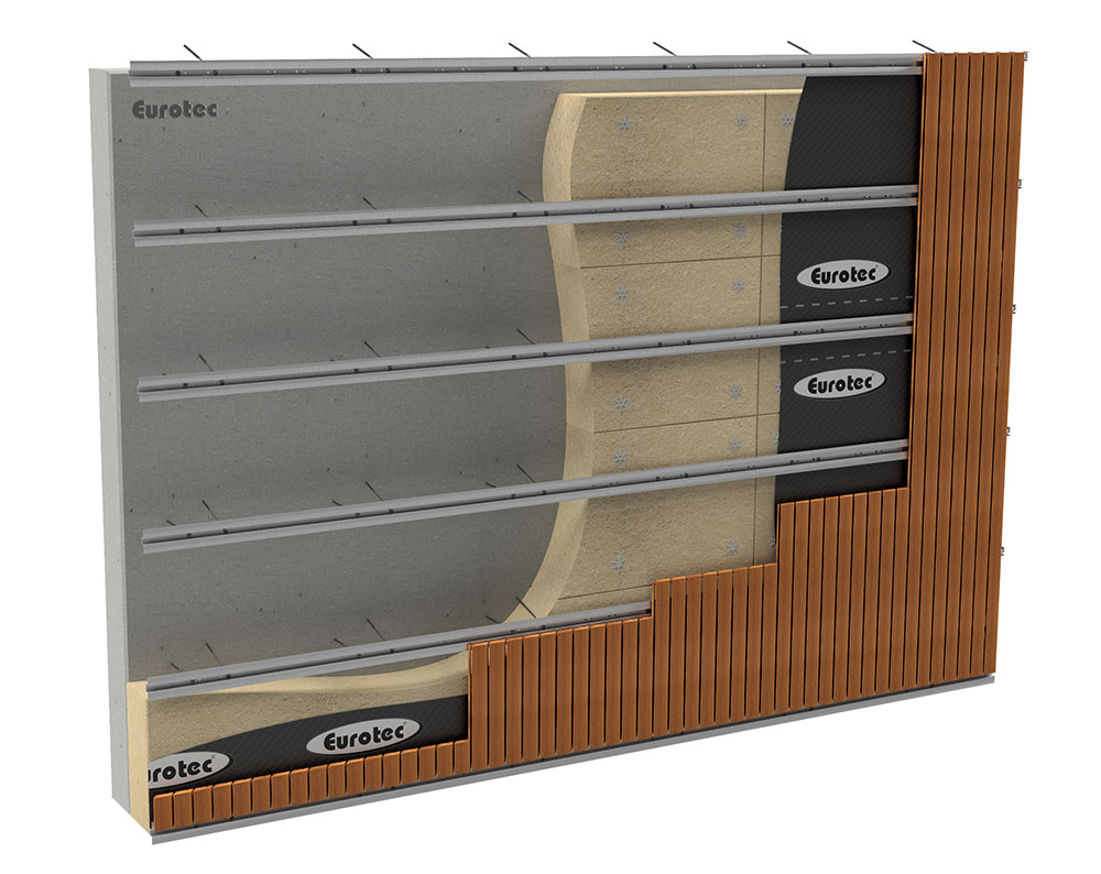 - Außenbereich: Vorgehängte hinterlüftete Fassade mit Fassadendämmung