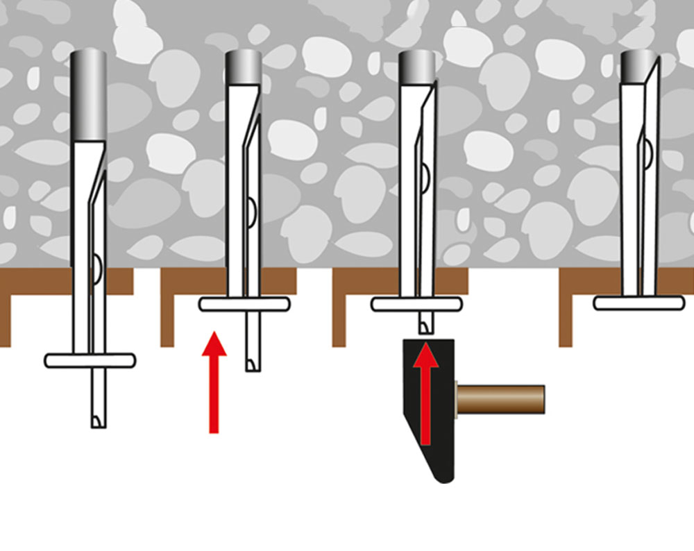 Der Deckennagel wird als Durchsteckmontage für die Befestigung von Unterkonstruktionen/Verbindungsmitteln in Beton eingesetzt. Er eignet sich für Beton der Festigkeitsklassen von C20/25 bis C50/60. Der Deckennagel darf nur für die Mehrfachbefestigung von nichttragenden Systemen verwendet werden.