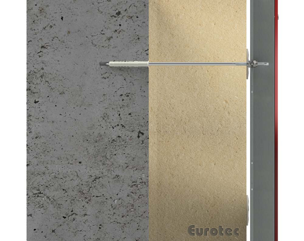 - Durch die frei drehende Gewindehülse am Kopf der Schraube kann die Unterkonstruktion der Fassade parallel zur Hauswand gerichtet werden