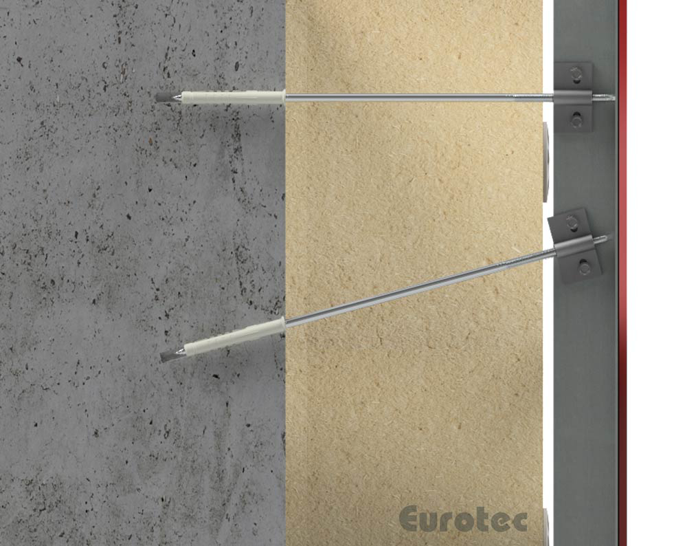 - Durch die frei drehende Gewindehülse am Kopf der Schraube kann die Unterkonstruktion der Fassade parallel zur Hauswand gerichtet werden