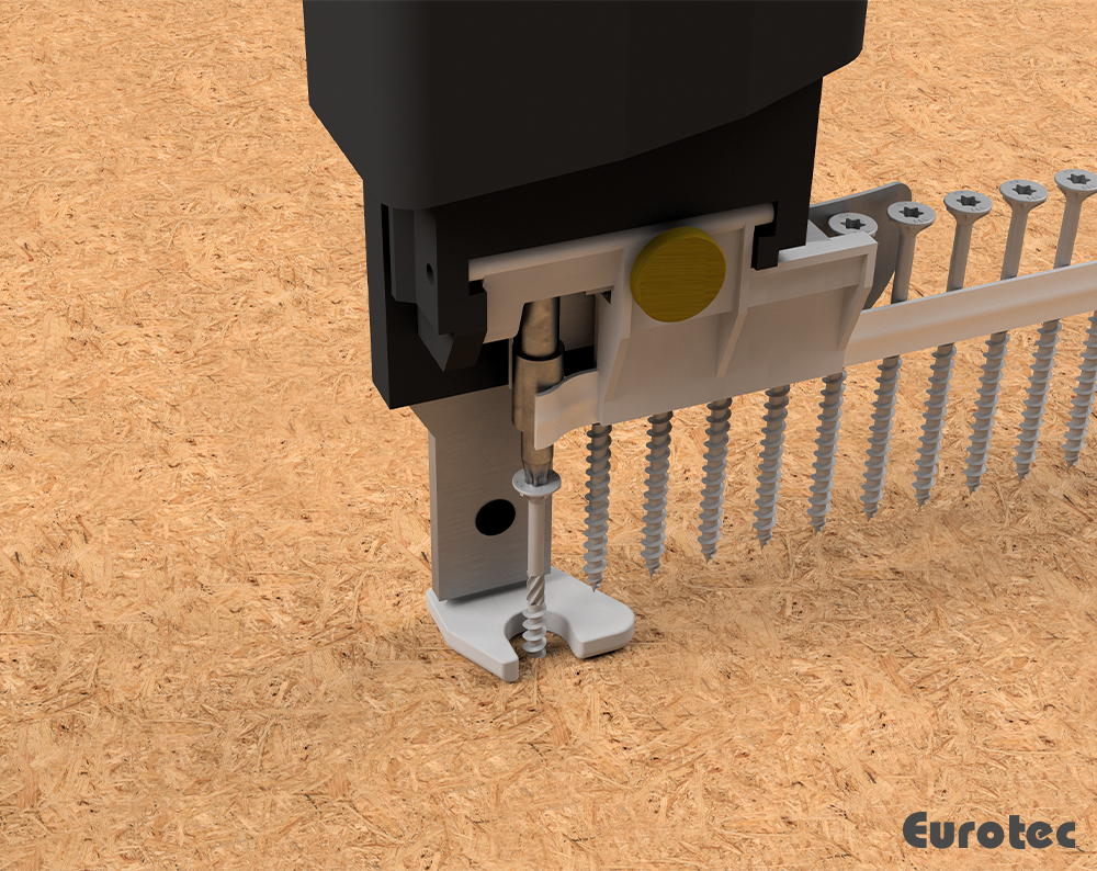 Für die Montage von Holzwerkstoffplatten auf Holzunterkonstruktionen kann die magazinierte HBS Holzbauschraube mit Senkkopf verwendet werden. Zu ihrem Anwendungsbereich gehören der Holzrahmen- und Massivholzbau.