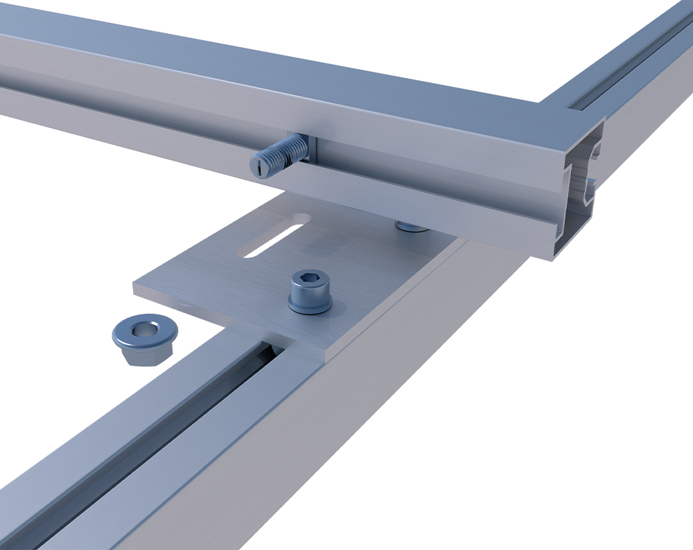 Zweilagige Gestelle können größere Strecken überbrücken und uneinheitliche Abstände zwischen Sparren sowie Unebenheiten in der Dacheindeckung ausgleichen. Das Kreuzverbinder-Set dient zur Kreuzverbindung von zwei Montageprofilen. Im Lieferumfang sind eine Verbinderplatte, zwei Nutensteine, 2 Zylinderkopfschrauben, eine Hammerkopfschraube sowie eine Sperrzahnmutter enthalten.
