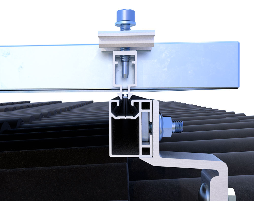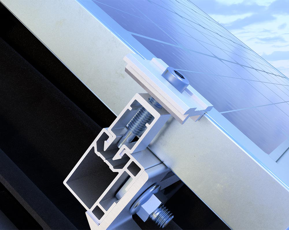 Die Modulklemme FASTFIX kann bei Solarmodulen mit Rahmenhöhen von 30–35 mm verwendet werden. Sie befestigt die Solarmodule mit einer einfachen Klickfunktion und ist sowohl für Trapezblech- als auch für Steildächer geeignet. Die Modulklemme FASTFIX ist mit dem Montageprofil Steildach und Steildach Slim kompatibel.