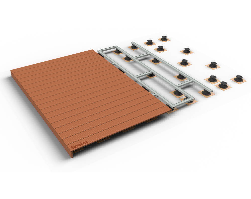 Die Queraussteifung Eveco ist die perfekte Ergänzung zu unseren Aluminiumprofilen. Mithilfe von Queraussteifungen wird die Unterkonstruktion einer Terrasse durch ein mögliches Kriechen gesichert. Die vormontierten Winkel an der Queraussteifung vereinfachen die Montage.