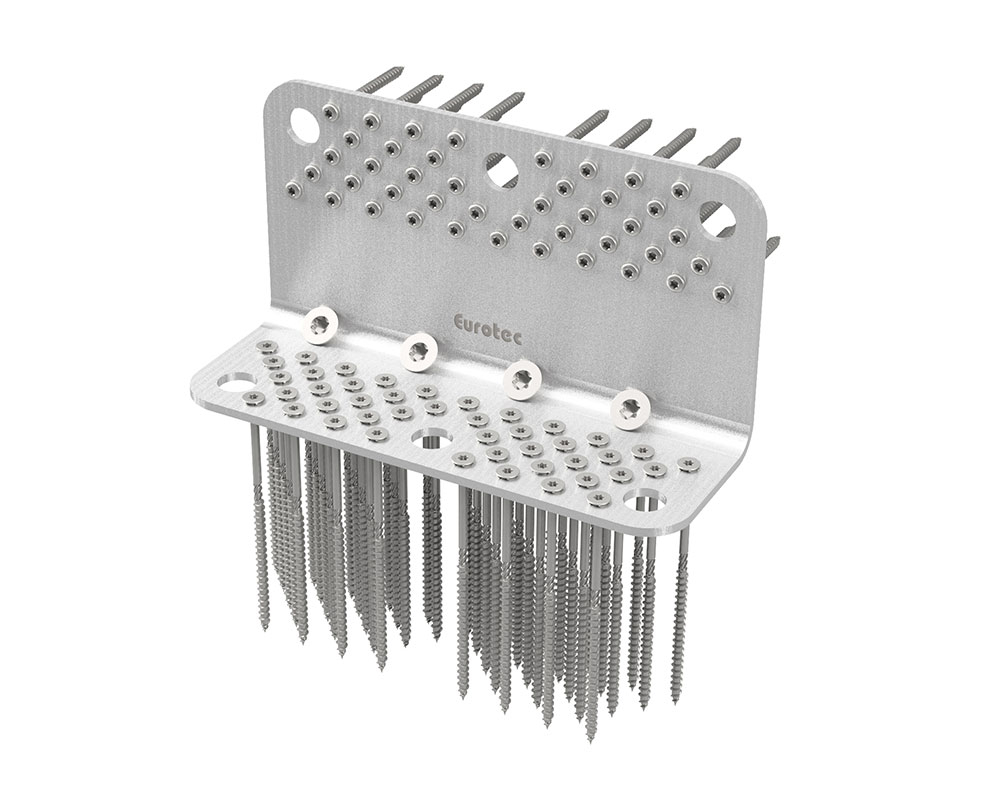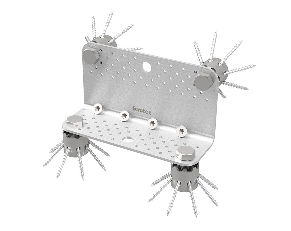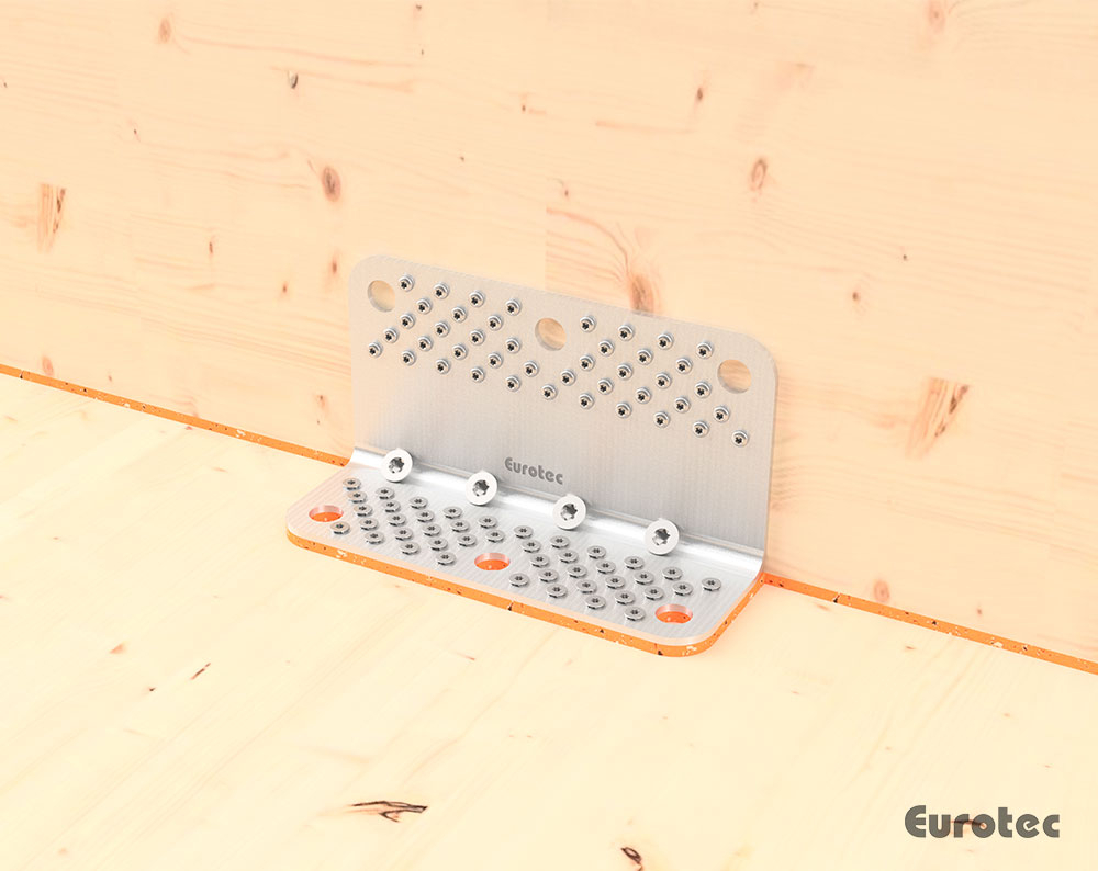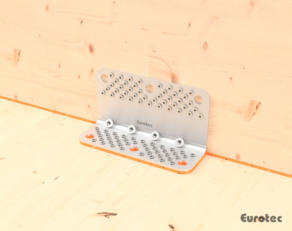Ergänzen Sie die Eurotec Scherwinkel und Systemwinkel CLT mit der SonoTec Winkelentkopplung. Diese dafür gefertigten Unterlagen werden aus dem SK04 Material hergestellt, welches aus Kork und Naturkautschuk besteht. Die SonoTec Winkelentkopplung wird angewendet, um Schwingungen zu dämpfen.