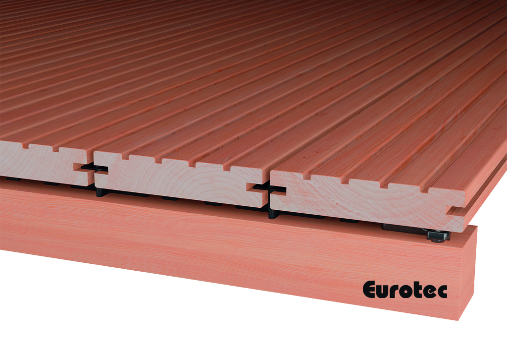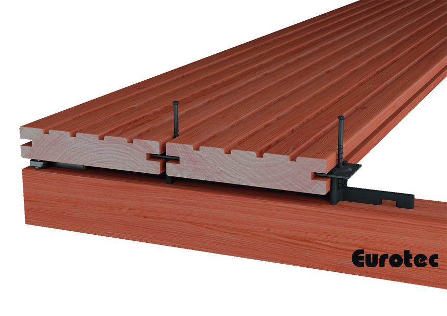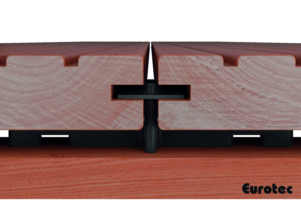 Bei Einhaltung der Verlegevorgaben von Eurotec, ermöglicht der T-Stick ein leichtes Justieren der Dielen, bevor diese fest verschraubt werden. Nach dem Verschrauben sitzen die Dielen absolut fest. Muss eine Diele ausgetauscht werden, ist das mit diesem System auch nach Fertigstellung der Terrasse möglich.