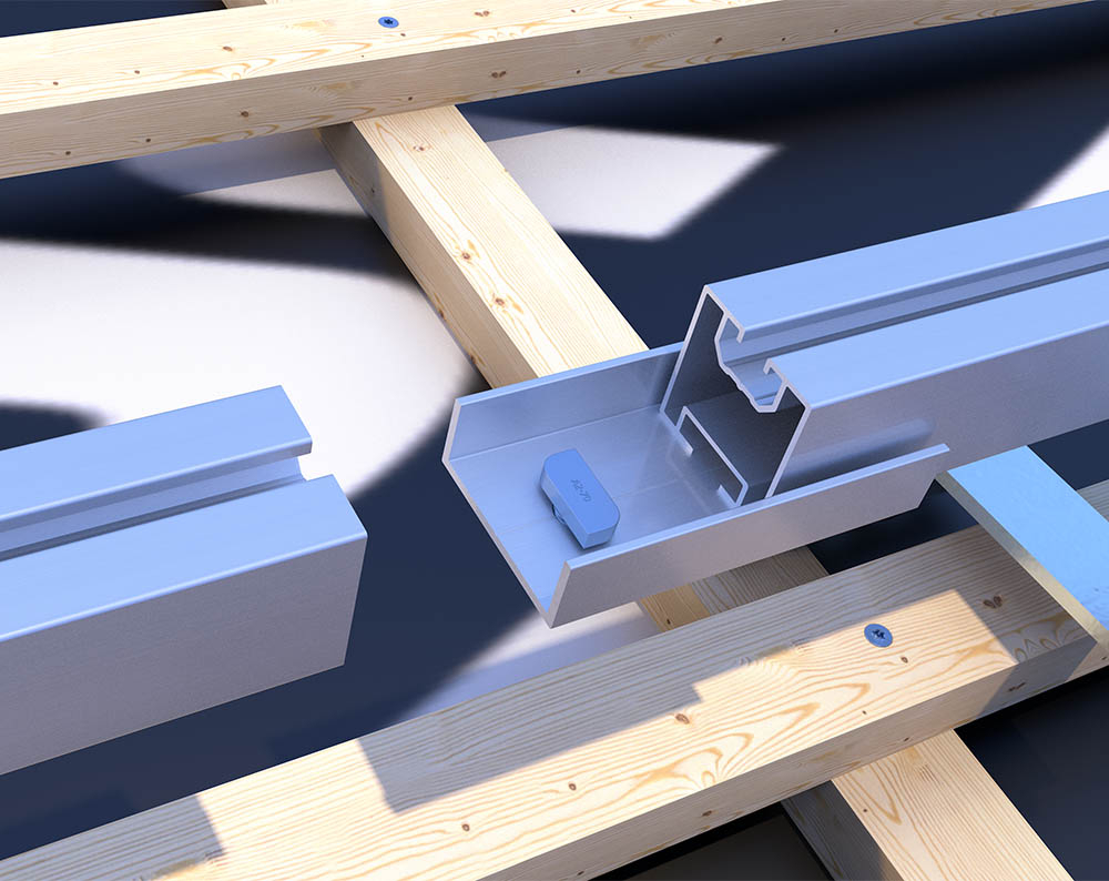Der U-Profilverbinder besteht aus Aluminium und dient der Verbindung mehrerer einzelner Montageprofile Steildach. Der Verbinder wird unter das jeweilige Ende von zwei Montageprofilen gesteckt und mittels Hammerkopfschraube sowie Sperrzahnmutter befestigt.