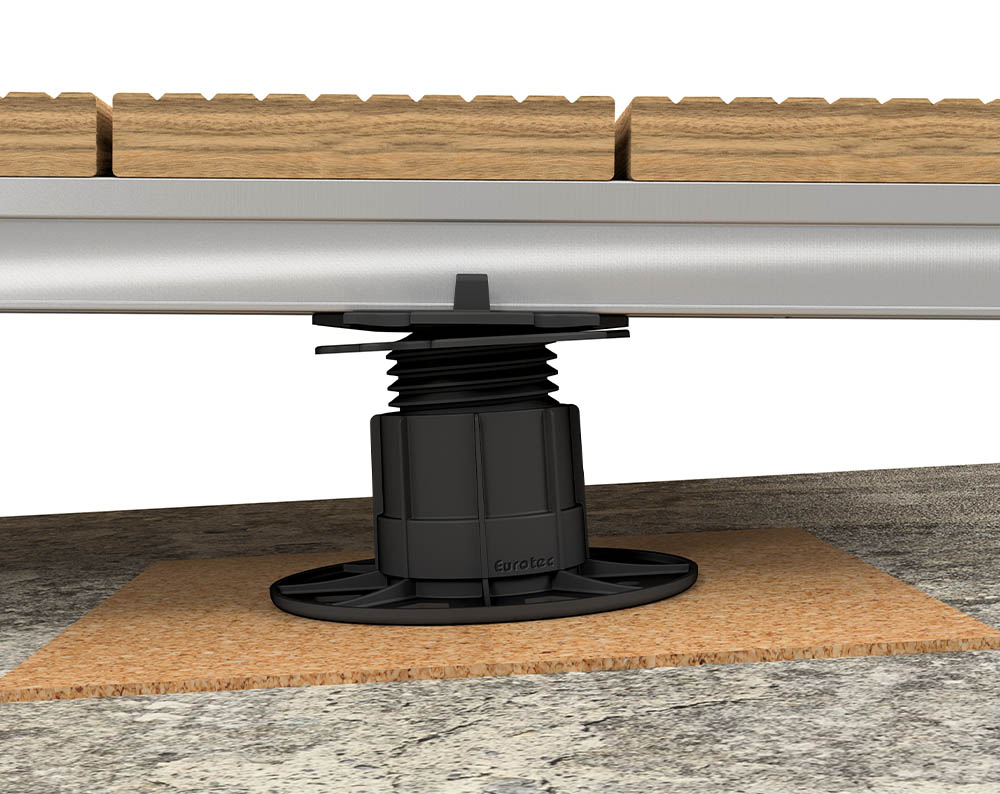 Der Eurotec Verstellfuß SL BASE eignet sich für die Verlegung von Terrassenunterkonstruktionen für den Außenbereich.