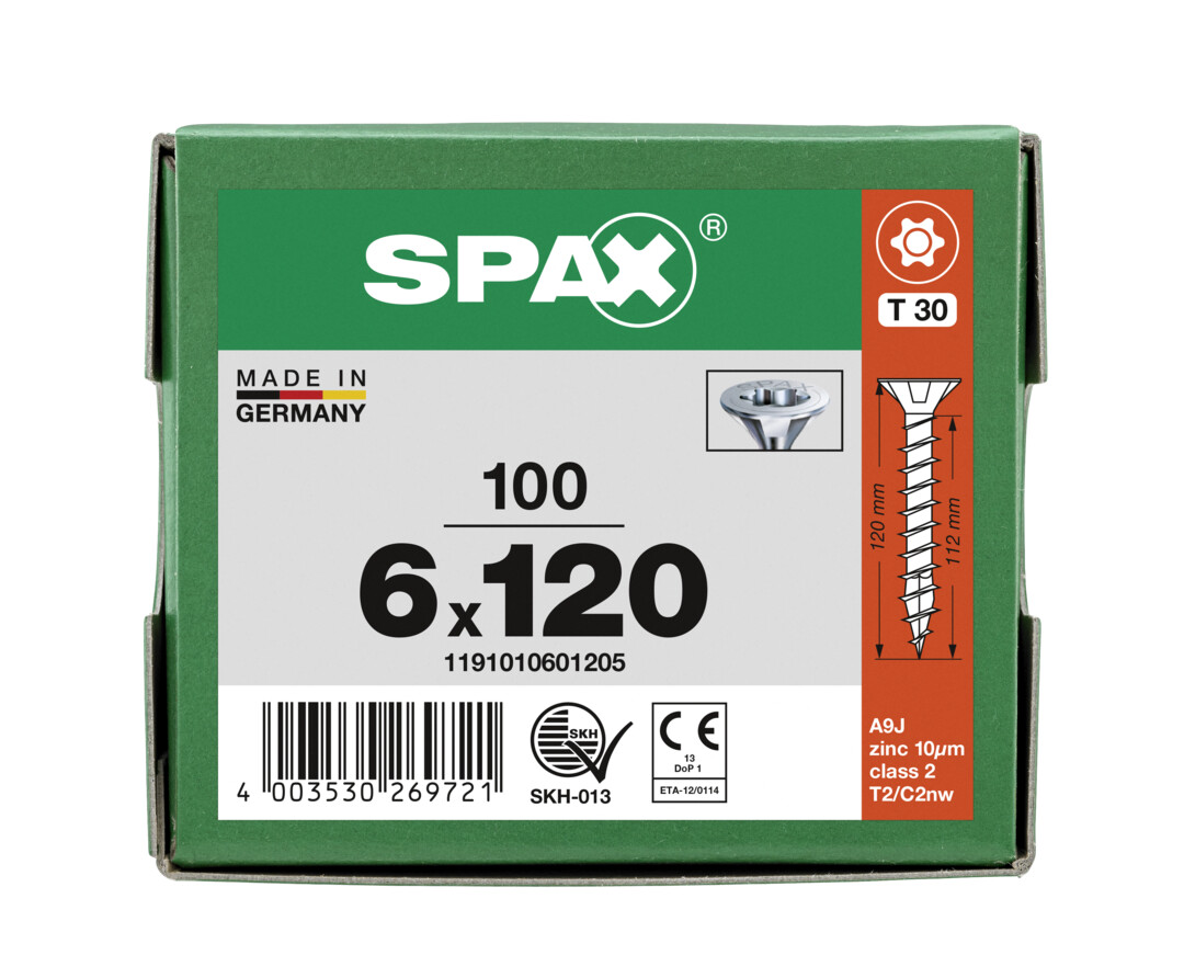 - 4CUT: Ohne Vorbohren (holzabhängig), ihre Spitze verringert wirkungsvoll die Spaltwirkung. Vierkant verdrängt die Fasern des Holzes und reduziert das Einschraubdrehmoment.