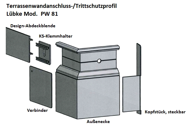das einzigartige Terrassenwandanschluss-/Trittschutzprofilsystem im steckbaren Baukastensystem