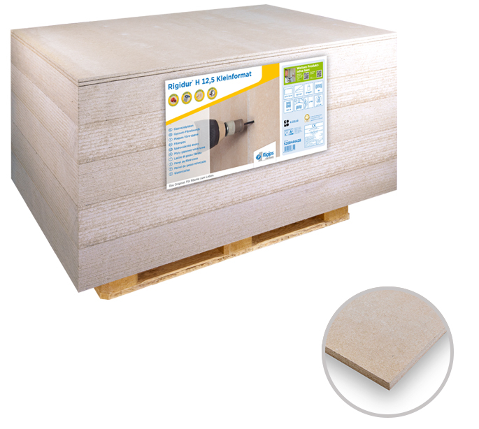 Die Rigidur H 12,5 Kleinformat von Rigips ist eine homogene Gipsfaserplatte mit scharfer Kante (SK). Die vorgrundierte Platte verfügt über eine glatte und extrem harte Oberfläche und dient zur Erstellung robuster Wand- und Deckensysteme mit Brand- und Schallschutzanforderungen. Auch für häusliche Feuchträume geeignet. Format: 150 x 100 cm, nichtbrennbar.