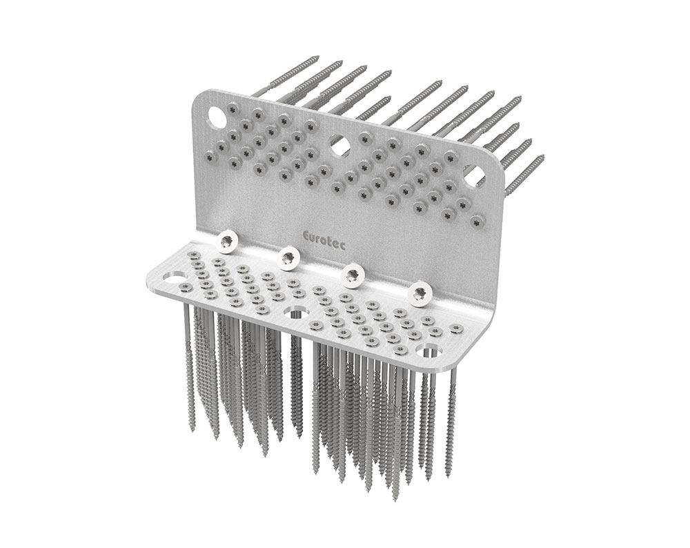 Ergänzen Sie die Eurotec Scherwinkel und Systemwinkel CLT mit der SonoTec Winkelentkopplung. Diese dafür gefertigten Unterlagen werden aus dem SK04 Material hergestellt, welches aus Kork und Naturkautschuk besteht. Die SonoTec Winkelentkopplung wird angewendet, um Schwingungen zu dämpfen.