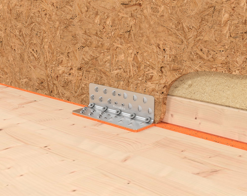 Ergänzen Sie die Eurotec Scherwinkel und Systemwinkel CLT mit der SonoTec Winkelentkopplung. Diese dafür gefertigten Unterlagen werden aus dem SK04 Material hergestellt, welches aus Kork und Naturkautschuk besteht. Die SonoTec Winkelentkopplung wird angewendet, um Schwingungen zu dämpfen.