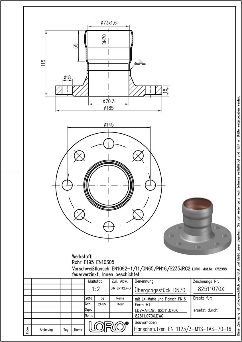 LORO-X Übergangsstück mit Flansch und Steckmuffenverbindung