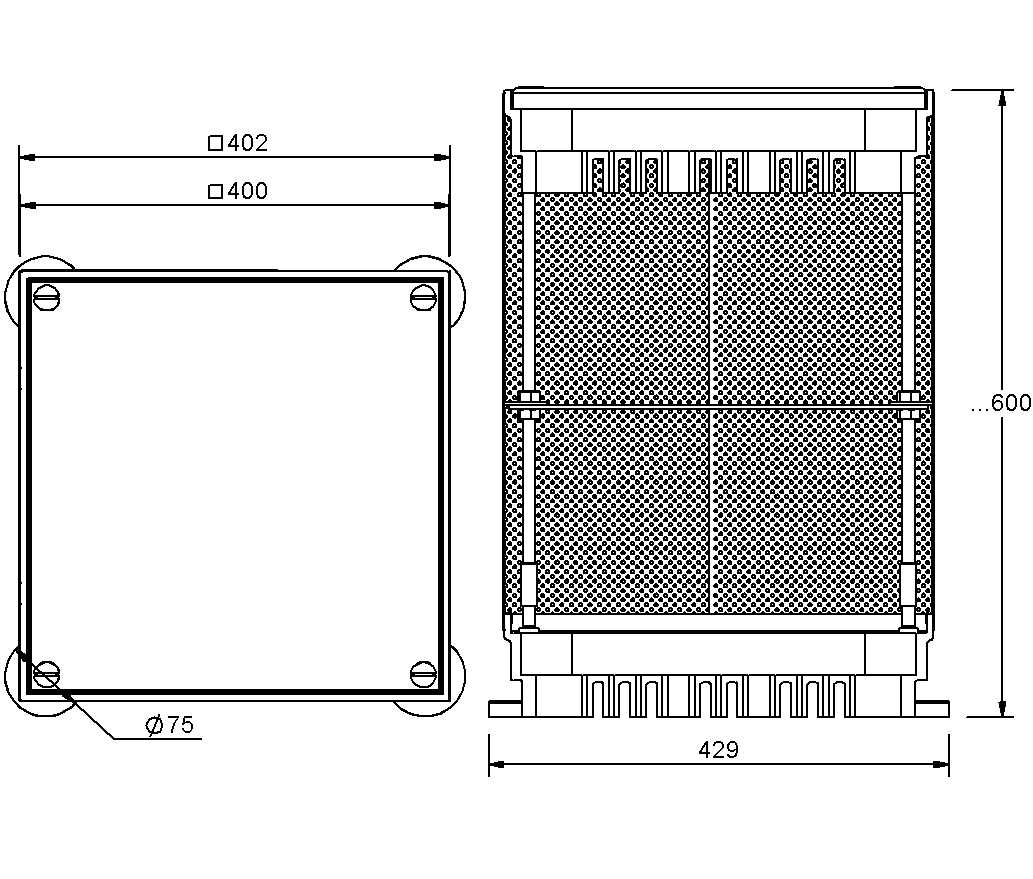 SitaRetention Gründachschacht, aus PUR mit geschlossener Abdeckung aus PE und EPDM und einem Lochblechrahmen aus Aluminium. Bauseits bis auf kürzbar 230 mm kürzbar, mit vier höhenverstellbaren Gummifüßen.