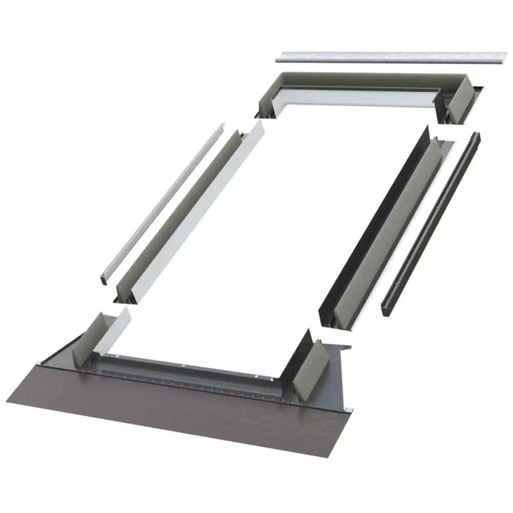 Der Eindeckrahmen ermöglicht den Anschluss des Fensters an hochprofilierte Eindeckmaterialien wie Dachziegel oder Profilbleche mit einer Profilhöhe bis max. 90 mm.