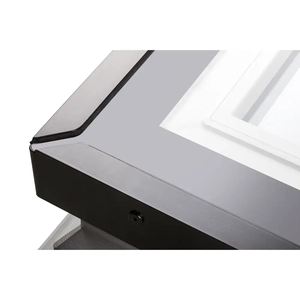 Das Fenster wird von oben mit einem speziellen Glassegment verkleidet, das je nach Größe aus 4mm oder 6mm starkem ESG-Glas und einem speziell hergestellten schwarzen Aluminiumprofil besteht. Das Glassegment ist werkseitig am Fenster montiert, was die Montagezeit erheblich verkürzt.