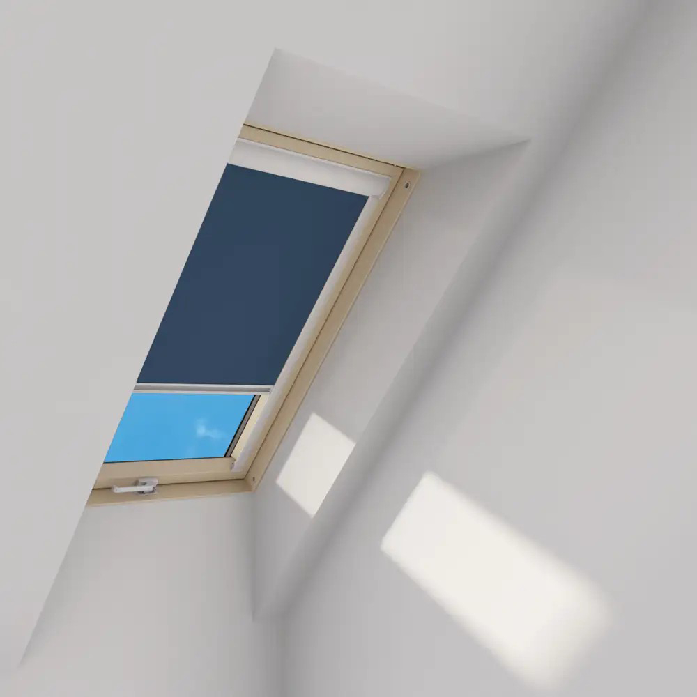 Eine große Auswahl an Farben und Mustern ermöglicht die beliebige Innengestaltung in jedem Dachboden. Die Aluminium-Führungsschienen verdecken die Stoffkanten und ermöglichen die Arretierung des Rollos in beliebiger Position sowie die stufenweise Regulierung des Lichteinfalls.