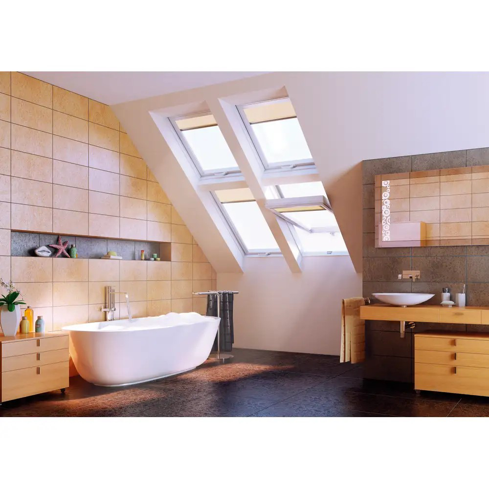 Die Kunststoff-Schwingfenster sind in erster Linie für Feuchträume geeignet, aber auch für Kunden, die moderne, weiße und pflegeleichte Dachfenster bevorzugen. Diese sind auf Basis eines ökologischen Stabilisators aus einer Kalk-Zink-Mischung in weiß (RAL 9010) gefertigt. Das Fenster ist gegen Rost und Witterungseinwirkungen beständig und bedarf wenig Pflege. Der Profilkunststoff weist eine hohe Beständigkeit gegen Feuchtigkeit und sonstige äußerliche, im Dachfensterbereich auftretende Einwirkungen auf.