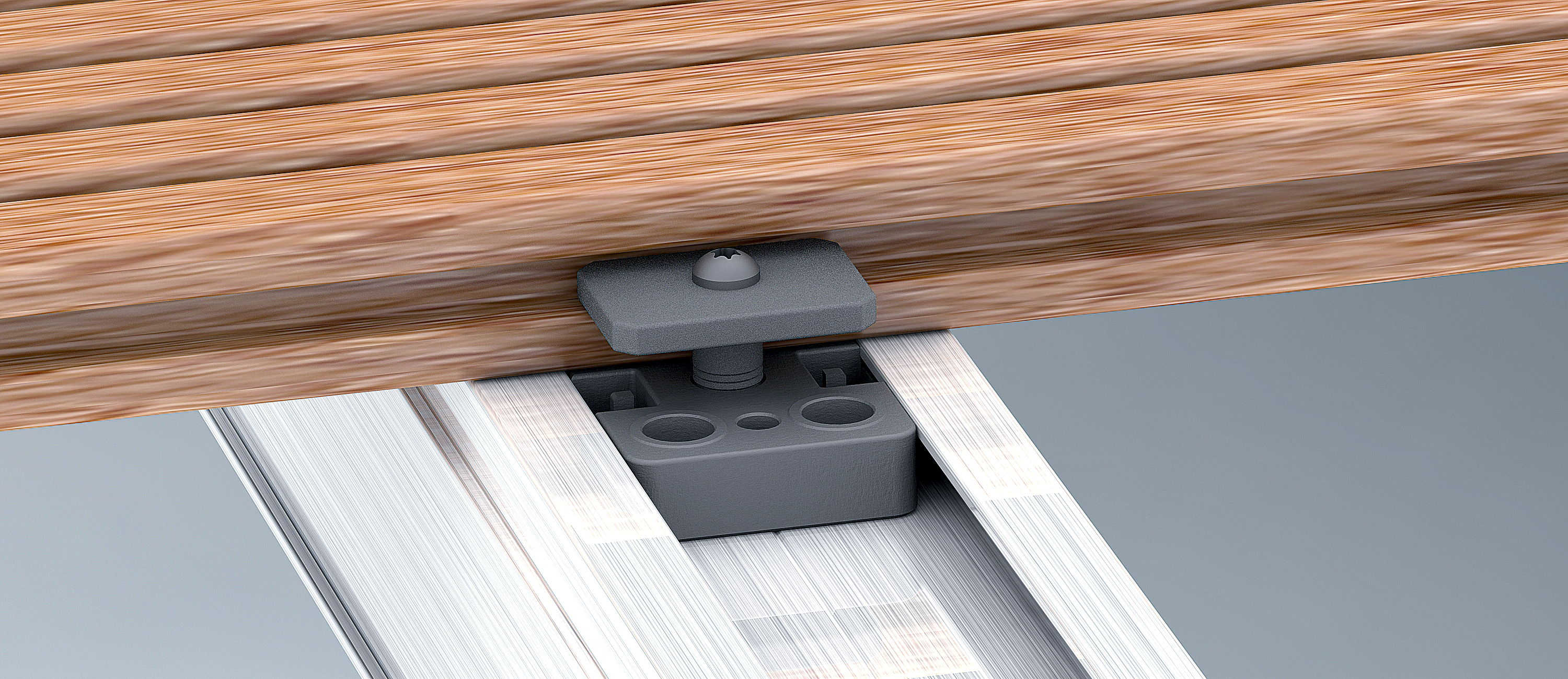 Das System bietet Varianten mit passenden Adaptern für Dielen- oder Plattenbeläge.