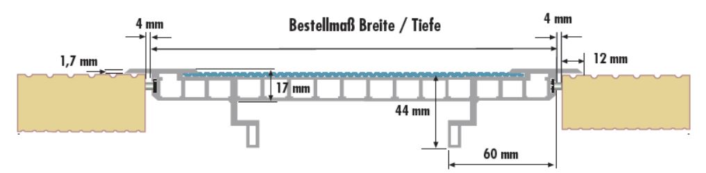- Bei 3-seitiger Auflage (z. B. Wandseite) ist die Montage eines Winkelprofils erforderlich
