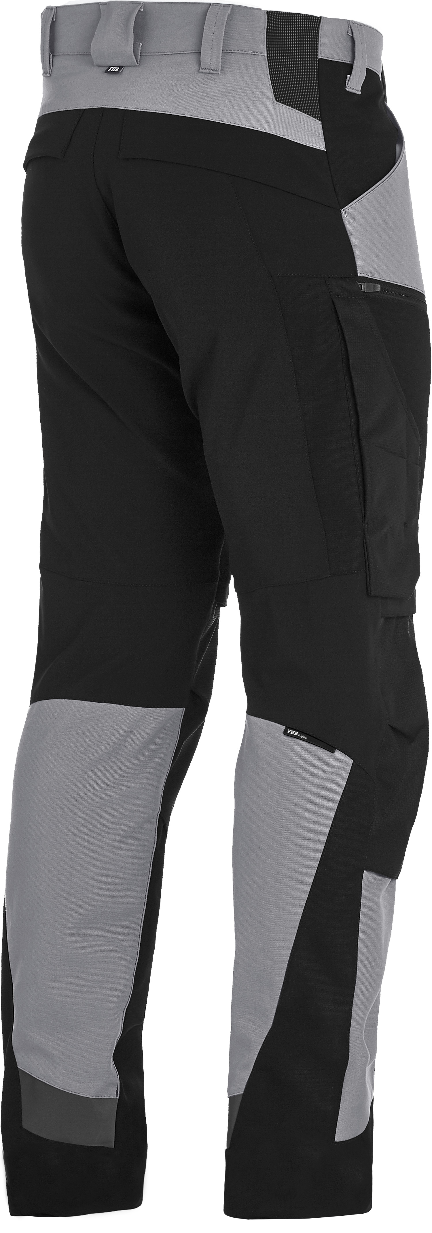 FHB LEO Arbeitshose elastisch, robust, elastisch im Gesäß-, Schritt- und Kniebereich, körperbetont, elastische 3D-Frinlock-Einsätze für Komfort-Passform, 100% Polyamid (Cordura) im Knie- und im Taschenbereich (Stift-, Messer- und Zollstock), Kniepolstereinschub von oben, mit RV verschließbarer Handytasche, dehnbare Volumentasche mit herausnehmbarem Magnetknopf verschließbar, 2 Gesäßpattentaschen, passender Gürtelschlaufenabstand für FHB-Holstertaschen, einfache Verlängerungsmöglichkeit der Hosenlänge um 5cm
