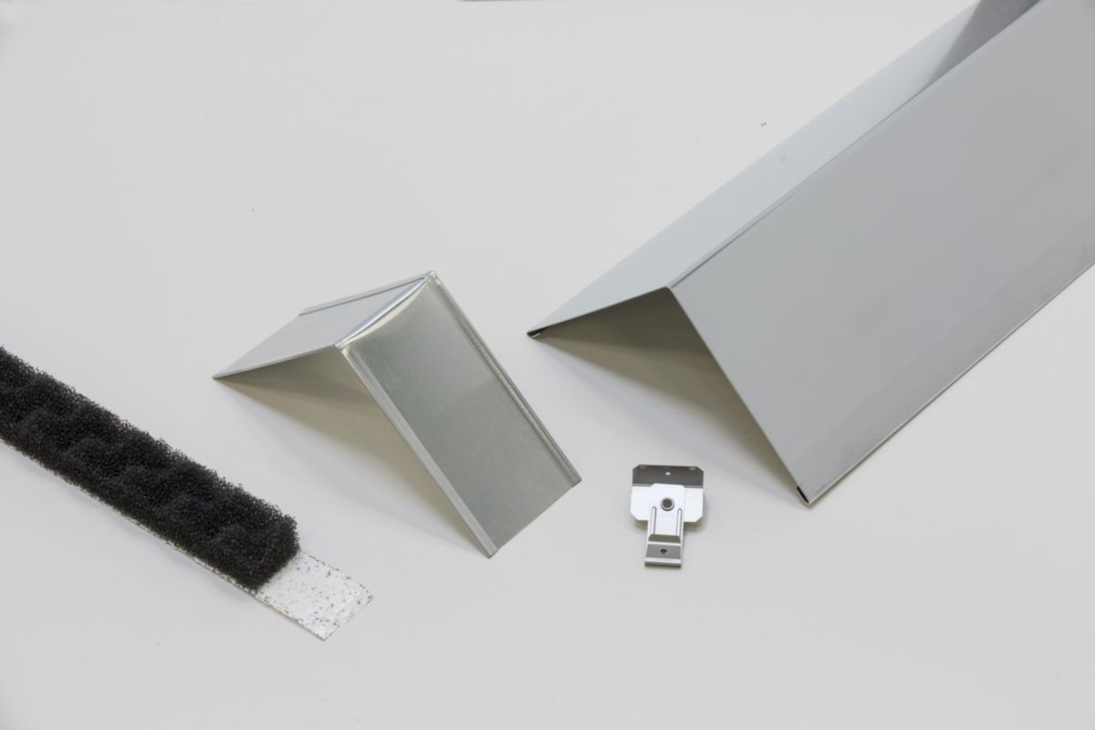 - 5 Firstabdeckung á 2M, 5 Verbindungsstücke, 12 Dekompressionsstreifen, 1 Karton à 50 Clips