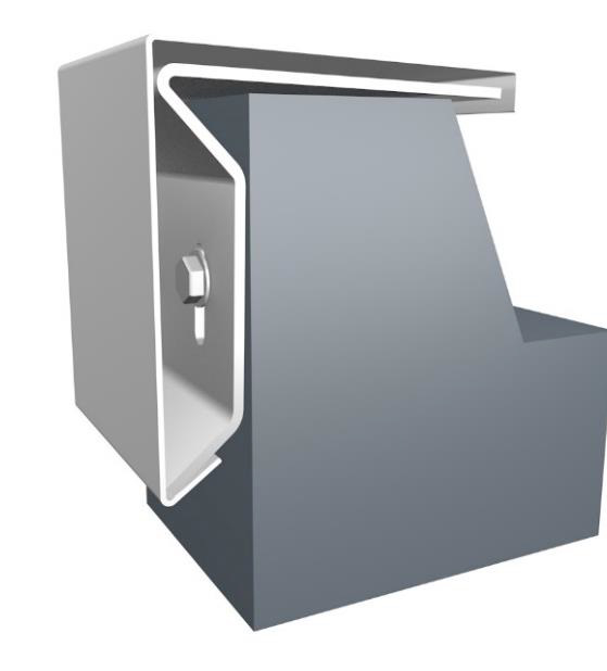 Der fassadenseitig zu befestigende Halter ermöglicht eine sichere Dübelbefestigung auch bei ganz schmalen Betonattiken unter Berücksichtigung erforderlicher Dübel-Randabstände.