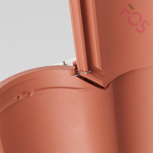 Mit ihren zwei Haken befestigt sie zwei Pfannen gleichzeitig an der Lattung: Eine Pfanne an der Seitenfalz, eine an der Kopffalz.
